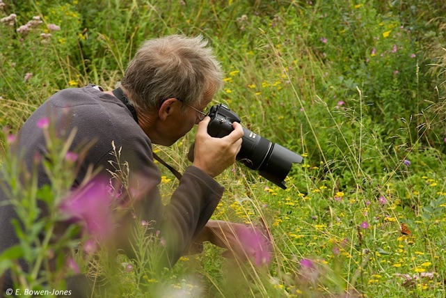 Evan Bowen-Jones took this picture of me photographing a comma in Grafton Wood, Worcestershire while we were looking for brown hairstreaks.